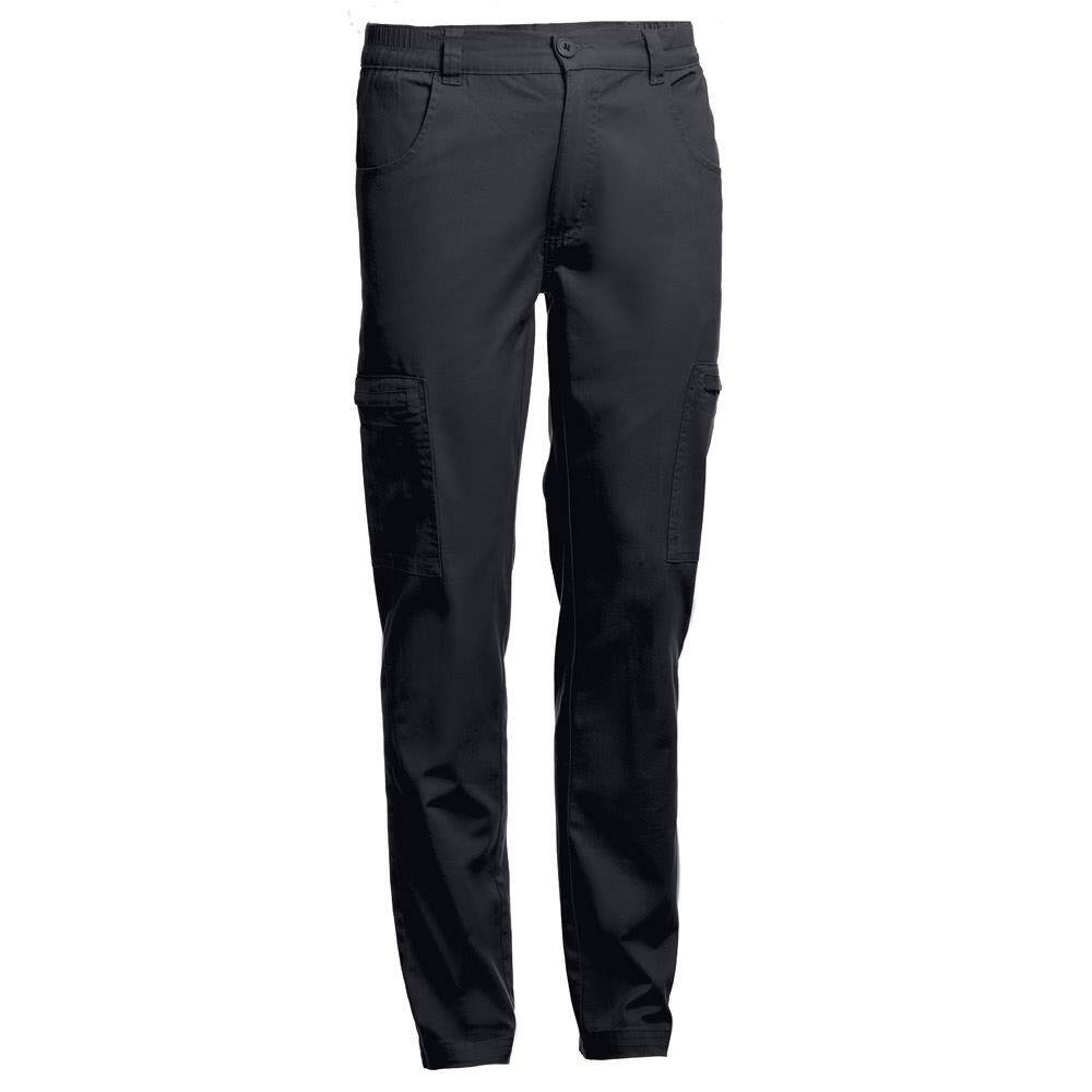 Spodnie z 98% bawełny i 2% elastanu: 240 g/m². Zawiera 6 kieszeni: 2 boczne kieszenie z zamkiem błyskawicznym, 2 kieszenie przednie i 2 kieszenie tylne. W talii pasek z gumką po bokach. Rozmiary: S, M, L, XL, XXL, 3XL