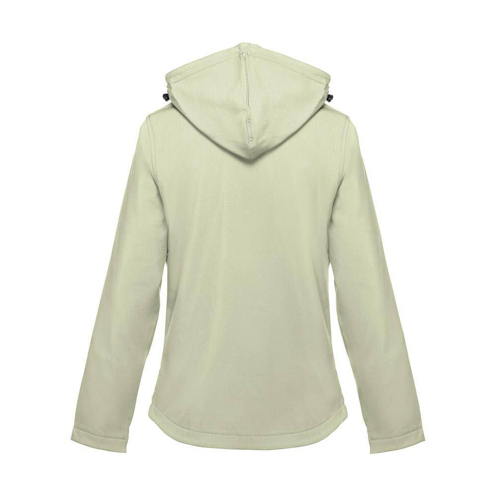 Damska kamizelka typu softshell z 96% poliestru i 4% elastanu (280 g/m²), z dwiema warstwami, odpinanym kapturem i wodoodporną powłoką. Kurtka z podszewką z 2 przednimi kieszeniami i ukośną kieszenią na piersi, wszystkie z zamkami. Regulowane mankiety o przylegającym zapięciu. Odpinany kaptur ze sznurkiem i paskiem o przylegającym zapięciu do mocowania przy kołnierzu. Kurtka ma zaokrąglony dolny brzeg. Rozmiary: S, M, L, XL, XXL