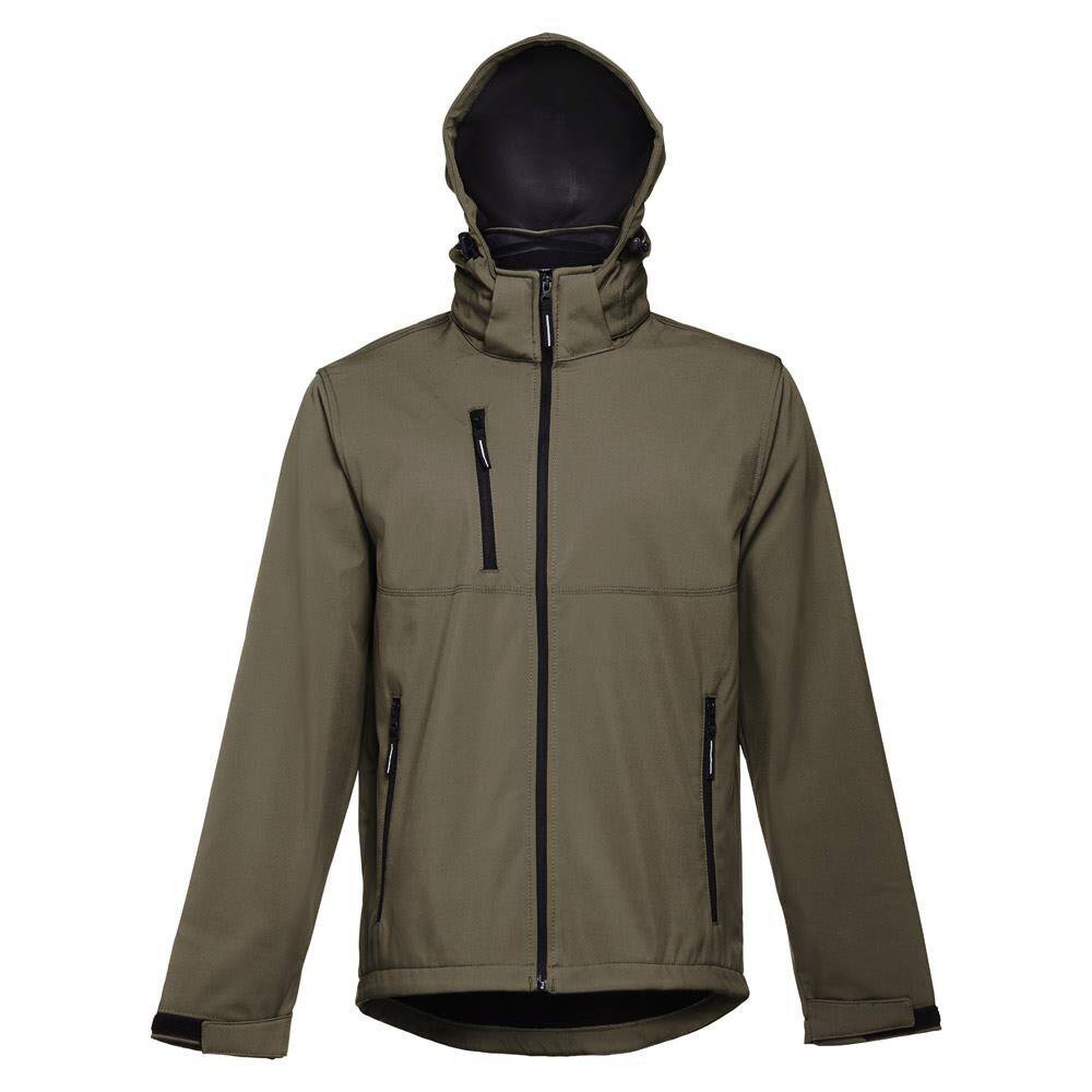 Męska kurtka softshell z 96% poliestru i 4% elastanu (280 g/m²), z dwiema warstwami, odpinanym kapturem i wodoodporną powłoką. Kurtka z polarową podszewką z 2 przednimi kieszeniami i ukośną kieszenią na piersi, wszystkie z zamkami. Regulowane mankiety o przylegającym zapięciu. Odpinany kaptur ze sznurkiem i paskiem o przylegającym zapięciu do mocowania przy kołnierzu. Kurtka ma zaokrgąglony dolny brzeg. Rozmiary: S, M, L, XL, XXL