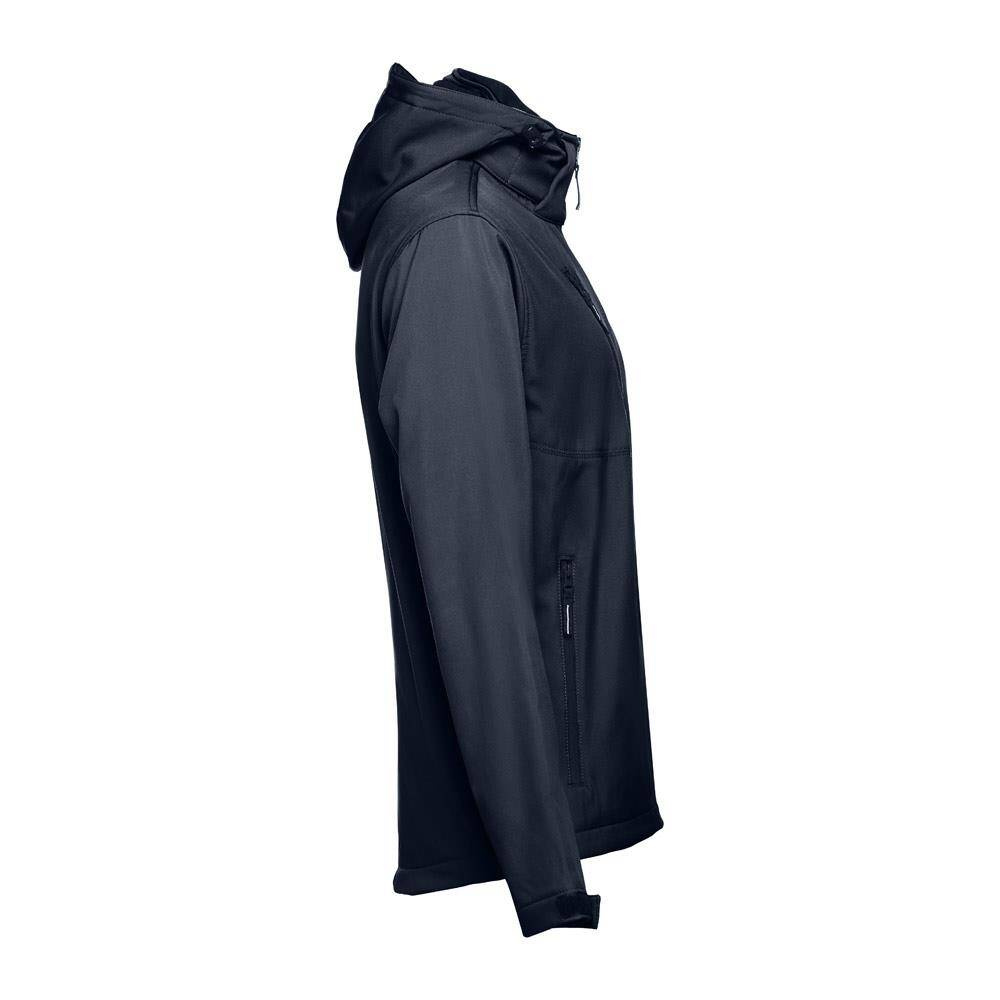 Męska kurtka softshell z 96% poliestru i 4% elastanu (280 g/m²), z dwiema warstwami, odpinanym kapturem i wodoodporną powłoką. Kurtka z polarową podszewką z 2 przednimi kieszeniami i ukośną kieszenią na piersi, wszystkie z zamkami. Regulowane mankiety o przylegającym zapięciu. Odpinany kaptur ze sznurkiem i paskiem o przylegającym zapięciu do mocowania przy kołnierzu. Kurtka ma zaokrgąglony dolny brzeg. Rozmiary: S, M, L, XL, XXL