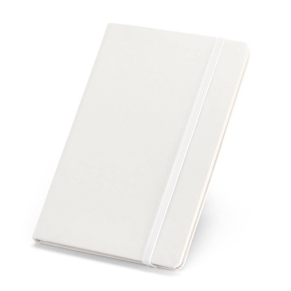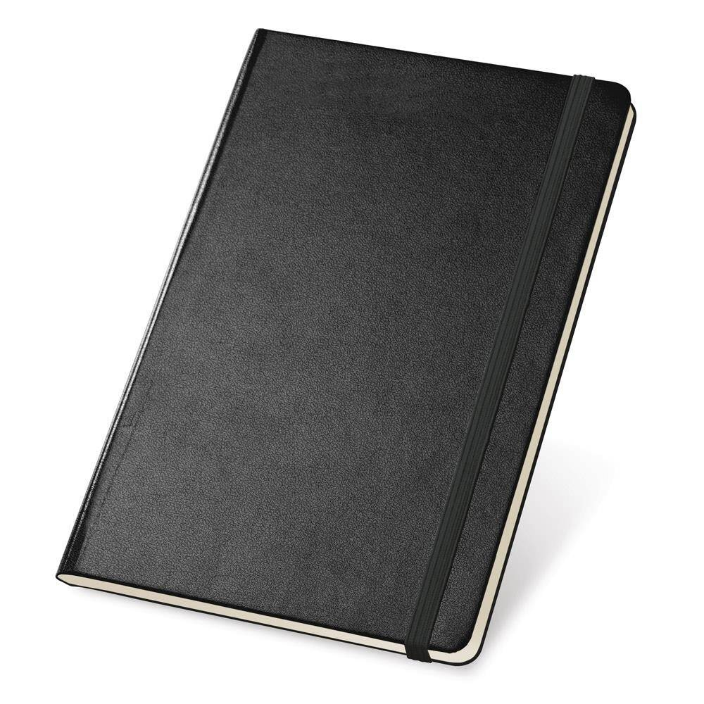 Notatnik A5 ze 160 stronami w linie w kolorze kości słoniowej. Zawiera twardą okładkę, wewnętrzną kieszeń, pasek oddzielający i elastyczną opaskę. 137 x 210 mm