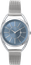 Elegancki zegarek czeskiej marki MINET z niebieską tarczą i nowoczesnym stalowym paskiem Milanese w kolorze srebrnym.