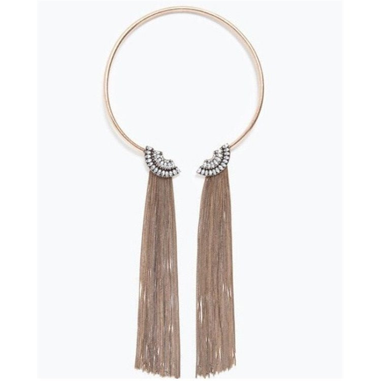 Klasyczne, piękne wzornictwo naszyjnika idealnie podkreśli naturalne piękno i klasę kobiety.Naszyjnik w kolorze złotym. z długimi wiszącymi łańcuszkami, zdobiony cyrkoniami.Świetnie pasuje do eleganckich, jak również do  codziennych stylizacji.Elegancki dodatek na każdą okazję, do sukienek, swetrów i bluzek.W naszym naszyjniku każda kobieta poczuje się wyjątkowo i pięknie:)