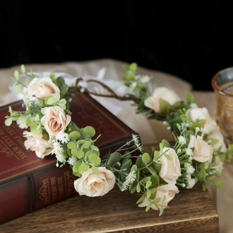 Romantyczny wianek na głowę z wysokiej jakości kwiatów sztucznych.
