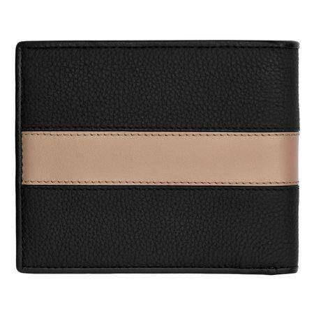Ten portfel na karty jest oferowany w dwóch wyrafinowanych opcjach: klasycznej, całkowicie czarnej wersji i eleganckim czarnym wariancie z kontrastującym beżowym paskiem z logo.
