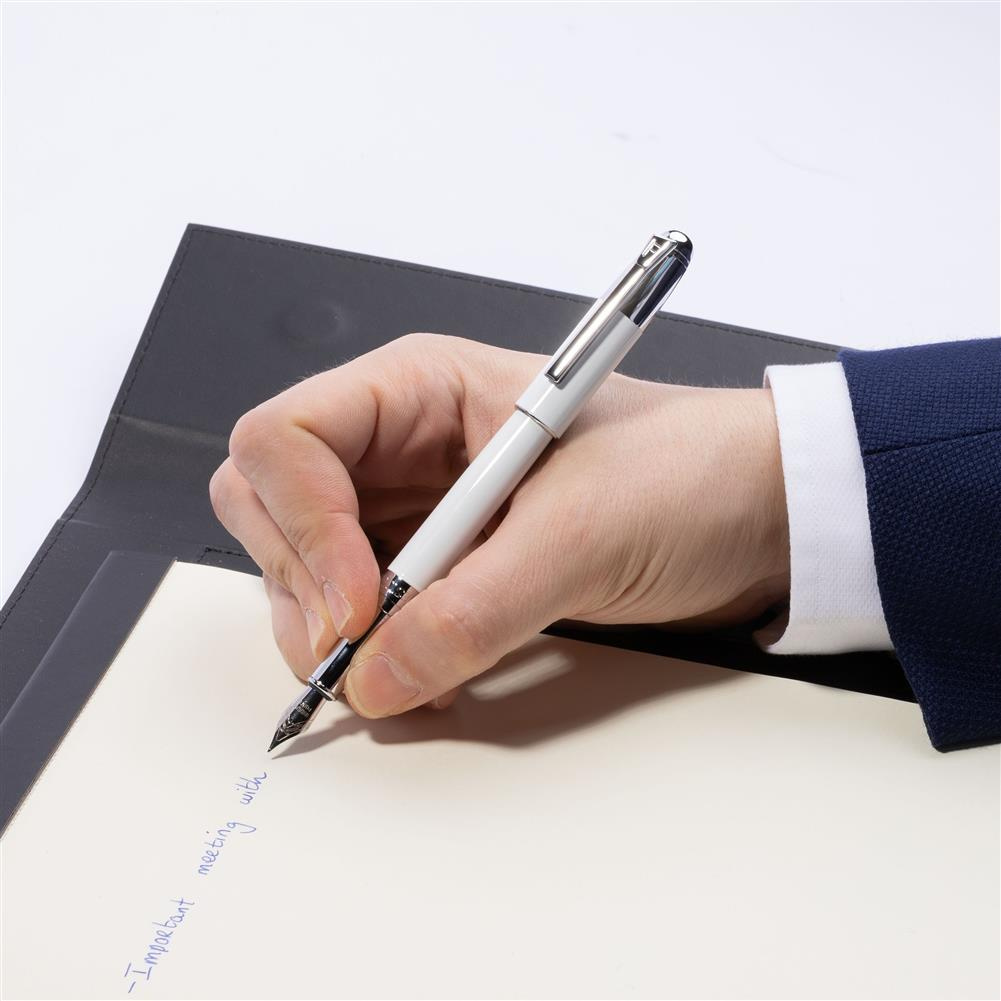 Eleganckie, idealnie wyważone pióro wieczne w wielu wariantach kolorystycznych z subtelnymi chromowanymi akcentami.