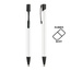 Długopis aluminiowy z gumowaną powierzchnią, z mechanizmem wciskanym, pisze na niebiesko.