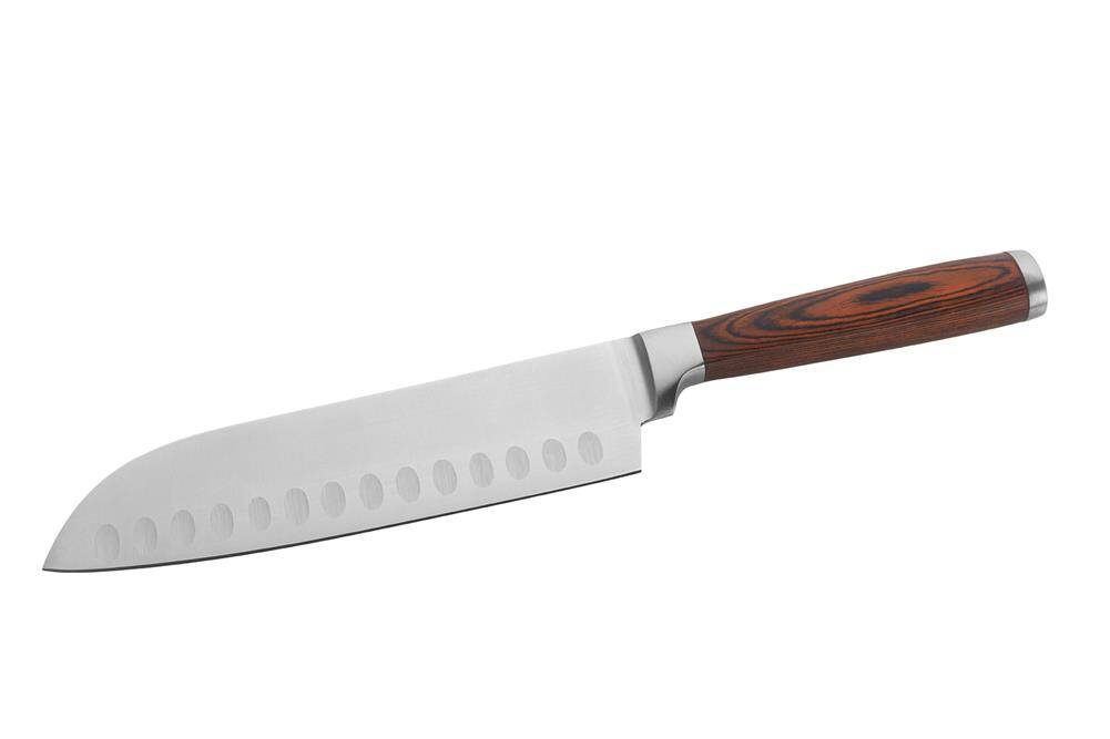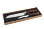 Wysokiej jakości zestaw dwóch ekskluzywnych noży kuchennych wykonanych z niemieckiej stali. Jeden z tych noży to nóż Santoku, którego nazwa można przetłumaczyć jako `trzy zalety` lub `trzy zastosowania`. Doskonale nadaje się do precyzyjnego krojenia, siekania i rozdrabniania warzyw, ryb i mięsa bez kości. Cienkie, bardzo ostre i gładkie ostrze zapobiega utracie soków podczas krojenia mięsa i owoców. Drugi nóż to nóż warzywny typu `paring` o tym samym wzornictwie. Jego zakrzywione ostrze ułatwia łuszczenie i obieranie żywności bez nadmiernego marnowania. Zapakowany w prezentowe pudełko Vanilla Season.