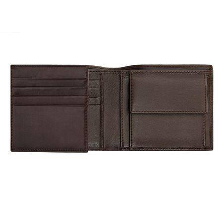 Ten składany portfel z kieszenią na monety jest wykonany ze starannie dobranej, gładkiej skóry.