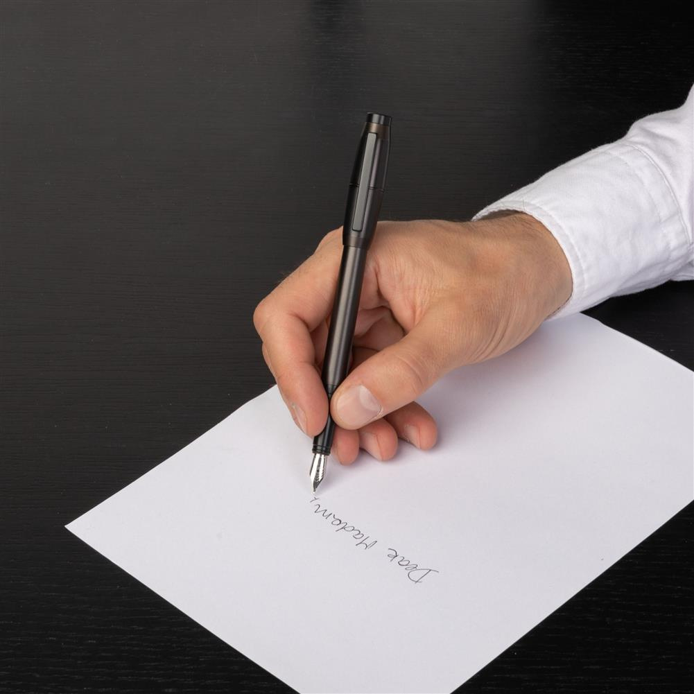 Futurystyczna estetyka, innowacyjne tekstury i współczesna paleta kolorów są podstawą naszych nowych przyborów piśmienniczych Cone. Mocna i wyważona rama pokazuje fachowe rzemiosło i dbałość o szczegóły charakterystyczne dla marki, zaprojektowane z myślą o trwałym stylu. Ta matowa wersja pistoletu z matowymi czarnymi wykończeniami jest wyrazem zaangażowania HUGO BOSS w innowacje w projektowaniu.