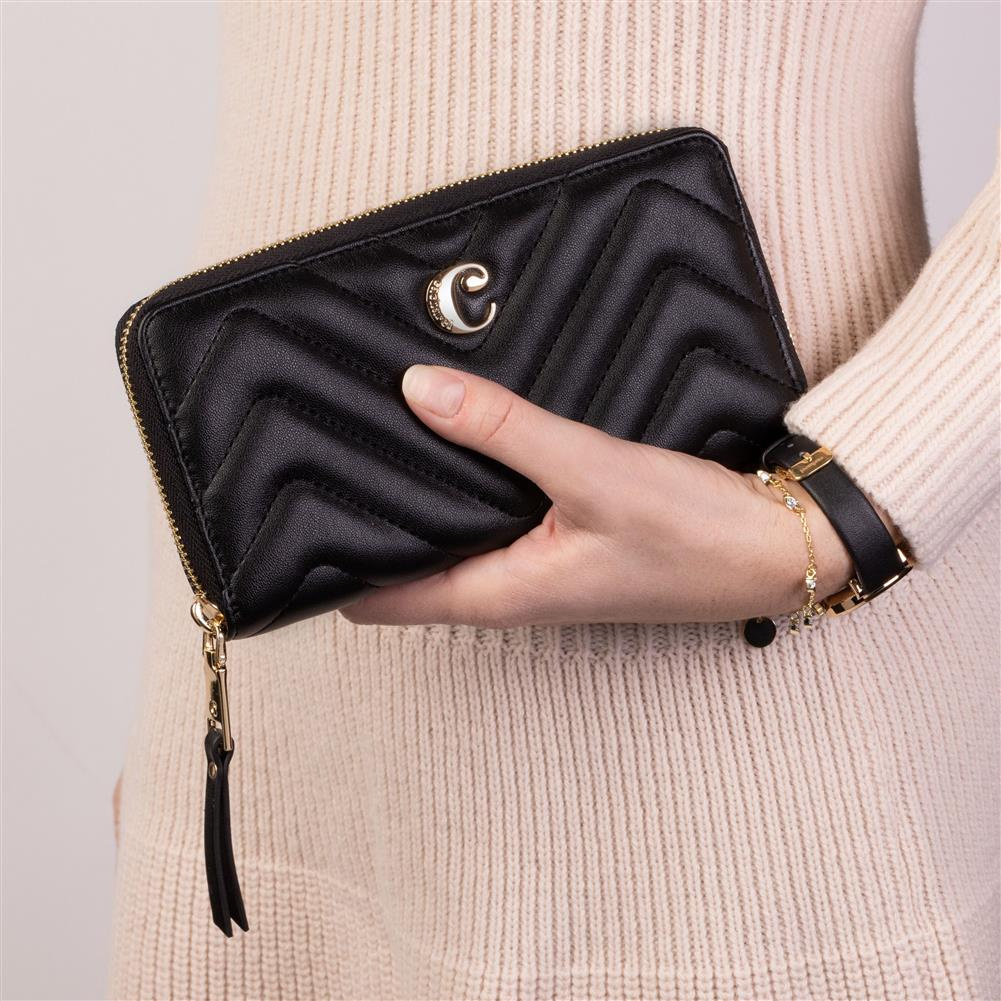 Portfel damski Odeon zapiany na zamek to ponadczasowe akcesorium wykonane z wysokiej jakości PU, złote dodaki nadają luksusowego charakteru.