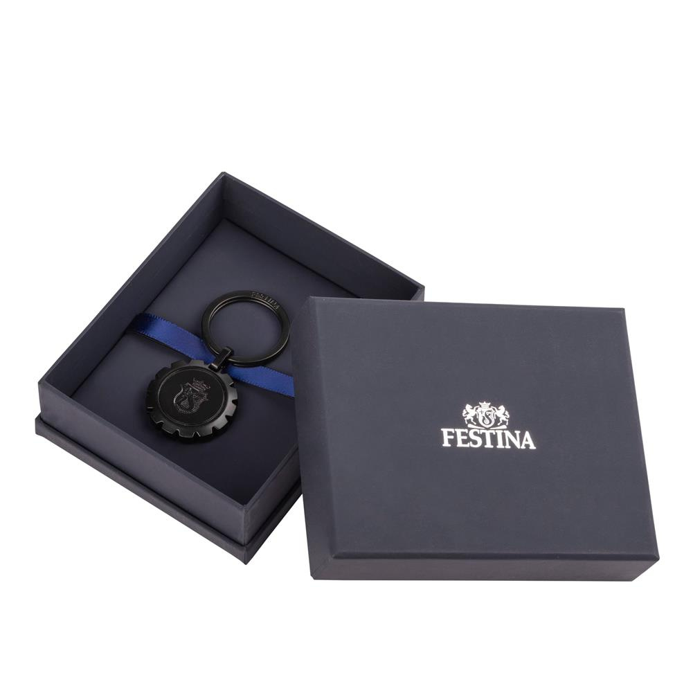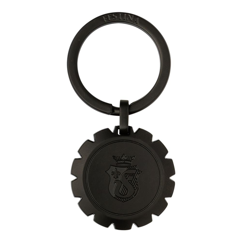 Czarny, matowy brelok do kluczy `Chronobike` jest inspirowany przyciskiem stopu ikonicznego zegarka Chrono Bike.