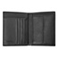 To etui na karty z klapką i saszetką na pieniądze jest wykonane ze starannie dobranej, teksturowanej czarnej skóry.
