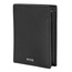 Ten pionowy portfel z klapką i kieszenią na monety jest wykonany ze starannie dobranej, czarnej, gładkiej skóry.