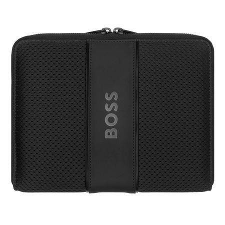 Przedstawiamy teczki `Arche`, połączenie współczesnego designu i funkcjonalności. Dostępne wyłącznie w eleganckim kolorze All Black, te teczki prezentują innowacyjny i nieoczekiwany materiał siatkowy, płynnie połączony z gumowanym wykończeniem PU, zapewniając wciągające i aktywne wrażenia dotykowe. Ponadwymiarowe wytłoczone logo Boss dodaje odważnego wyrazu, a drobiazgowe detale, takie jak matowe czarne zamki błyskawiczne, odzwierciedlają nasze przywiązanie do elegancji. Teczki `Arche` są dostępne w dwóch rozmiarach: A4 i A5.