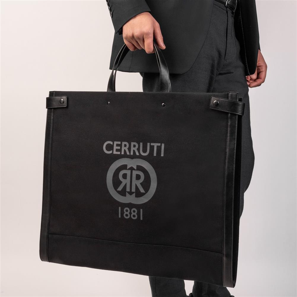 Ta czarna wersja jest minimalna i łatwa do noszenia, a na jej powierzchni znajduje się nadruk nowego logo CERRUTI 1881.
