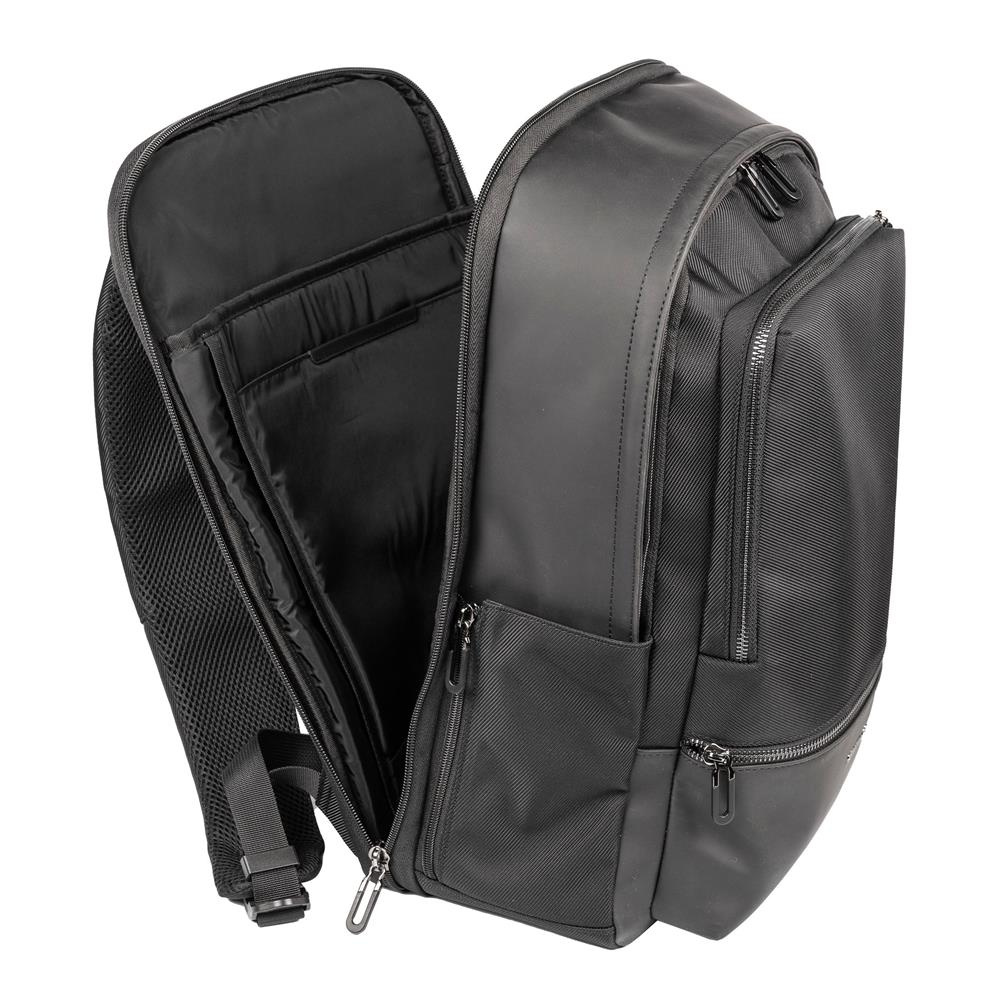 Plecak Cerruti `Heathrow` został zaprojektowany jako idealny towarzysz podróży dla aktywnych podróżników. W rezultacie powstał bardzo funkcjonalny modny dodatek z wieloma wyjątkowymi funkcjami, takimi jak liczne komory zapinane na zamek błyskawiczny, przegroda na laptopa i port USB umożliwiający ładowanie smartfona podczas podróży. Każdy z materiałów, z których wykonano plecak, został starannie dobrany nie tylko pod kątem stylu, ale także wygody i trwałości. Plecak posiada liczne zapinane na zamek przegródki, pozwalające na doskonałą organizację niezbędnych w podróży drobiazgów. Plecak `Heathrow` został również zaprojektowany z myślą o ergonomii, bardzo łatwy i wygodny do noszenia, z wyściełanym interfejsem tylnym.Wykończony luksusową sygnowaną płytką z logo marki, dla subtelnego i luksusowego efektu marki.