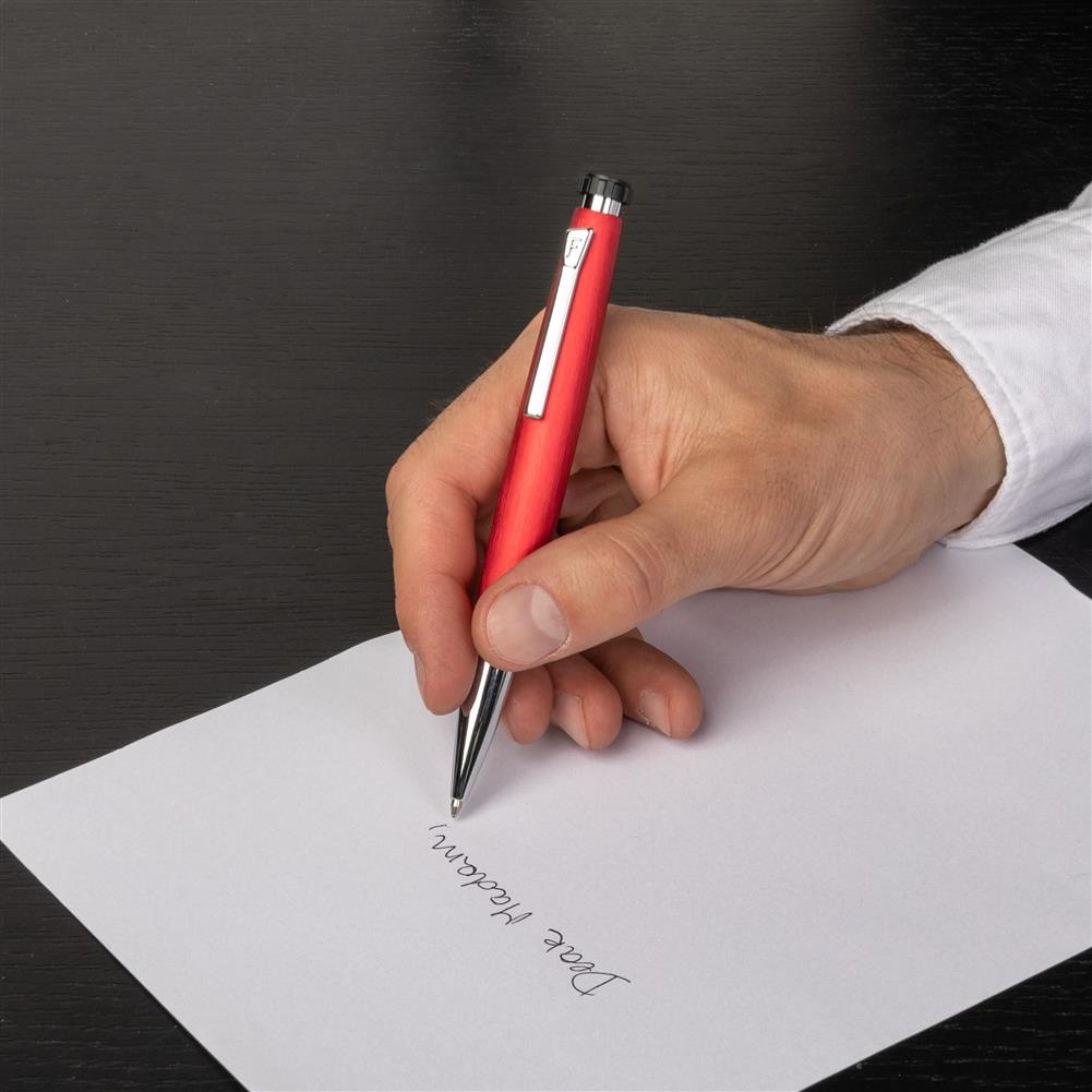 Pióro kulkowe Chronobike w kolorze czerwonym z delikatnymi, chromowanymi, metalicznymi akcentami łączy w sobie sportowy i luksusowy charakter.