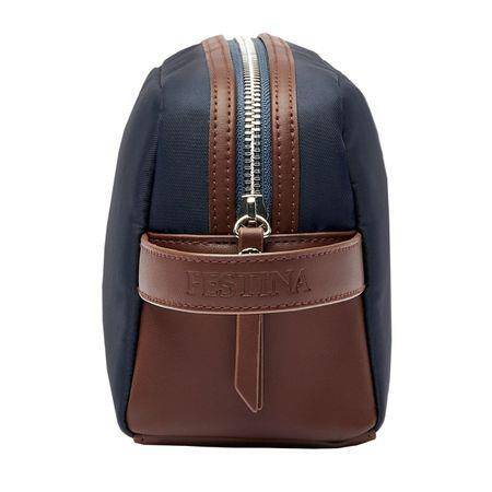 Torba `Festina` Button jest wykonana z gładkiego nylonu z teksturowanymi wykończeniami. Ponadgabarytowa płytka marynarki Button została zapożyczona z naszej tytułowej linii małych skórzanych towarów. Wyraziste chromowane akcenty i luksusowe metalowe i luksusowe metalowe detale nadają jej elegancki wygląd, jednocześnie zachowując ogólnie swobodną estetykę. Linia przycisków jest dostępna w dwóch kolorach: jedna wersja jest całkowicie czarna z emaliowaną tabliczką z podpisem, podczas gdy druga wersja łączy granatowy nylon z brązową wegańską skórą i wyrazistymi chromowanymi wykończeniami. Obie wersje charakteryzują się swobodną elegancją i są łatwe do łączenia i dopasowywania. Nasze logo Festina jest delikatnie wytłoczone na każdym produkcie, co stanowi subtelny końcowy akcent. Każdy szczegół jest delikatnie wykonany, w tym suwaki, ozdobione Festina Blazon. Te kosmetyczki są lekkie i bardzo praktyczne do przenoszenia wszystkich niezbędnych akcesoriów podróżnych.