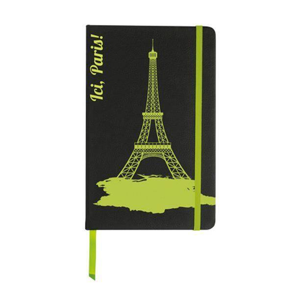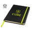 Notes A5 w twardej oprawie z kolorową gumką oraz materiałową zakładką.
