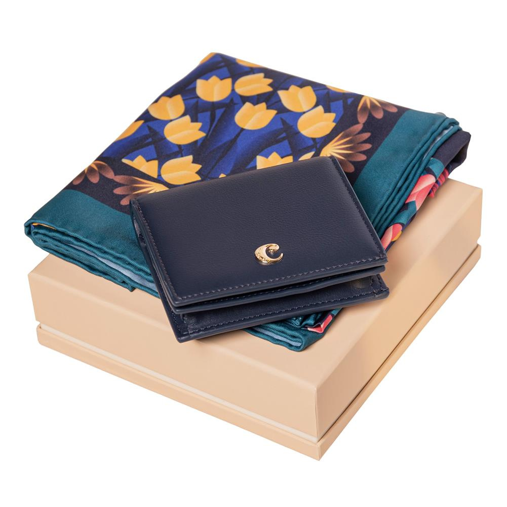 CEL333N - Portfel damski z kolekcji Albane pozwoli na idealne zorganizowanie kart płatniczych i notatek. Gładka tekstura oraz złote dodatki nadają luksusowego charakteru. Dostępny w kilku modnych kolorach.CFL333T - Apaszka Albane wykonana z wysokiej jakości poliestru w delikatny, jednak charakterystyczny , kwiatowy wzór z pięknie wyeksponowanym logo Cacharel w centralnej części.