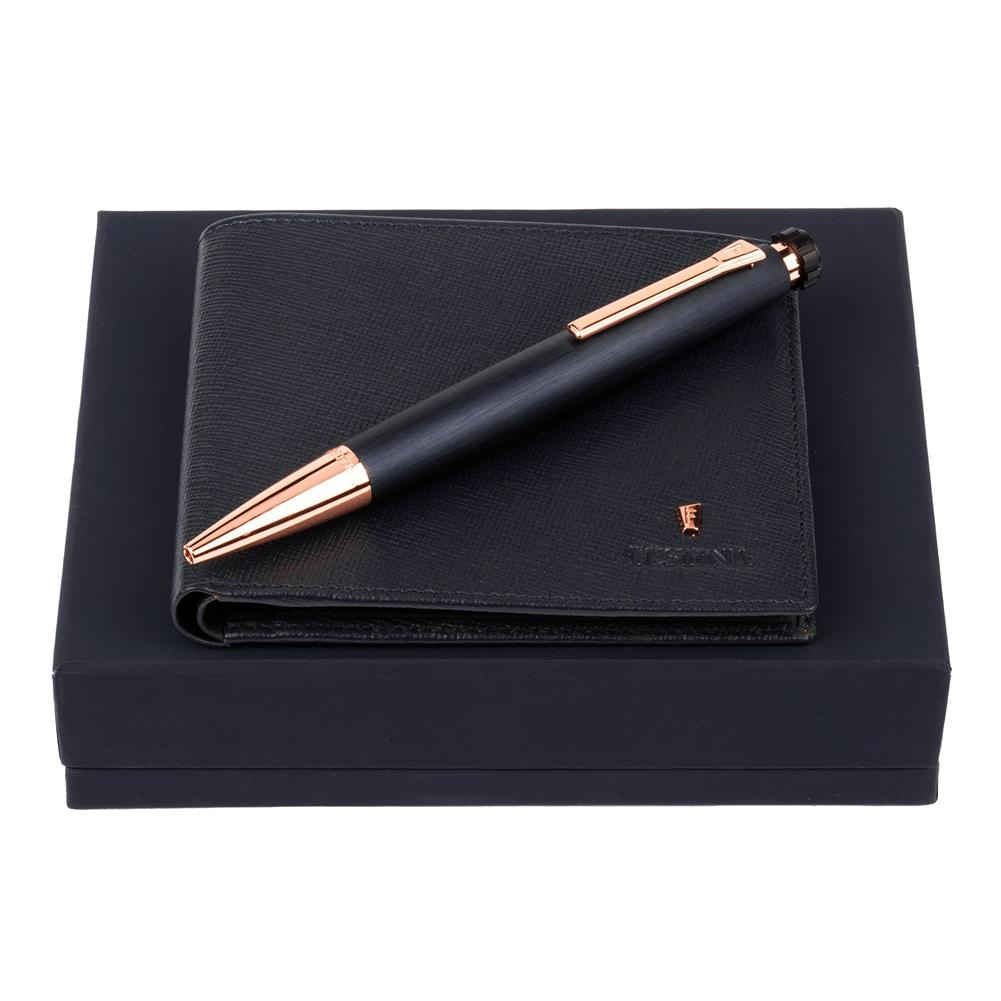 Elegancki zestaw składający się z portfela i długopisu.