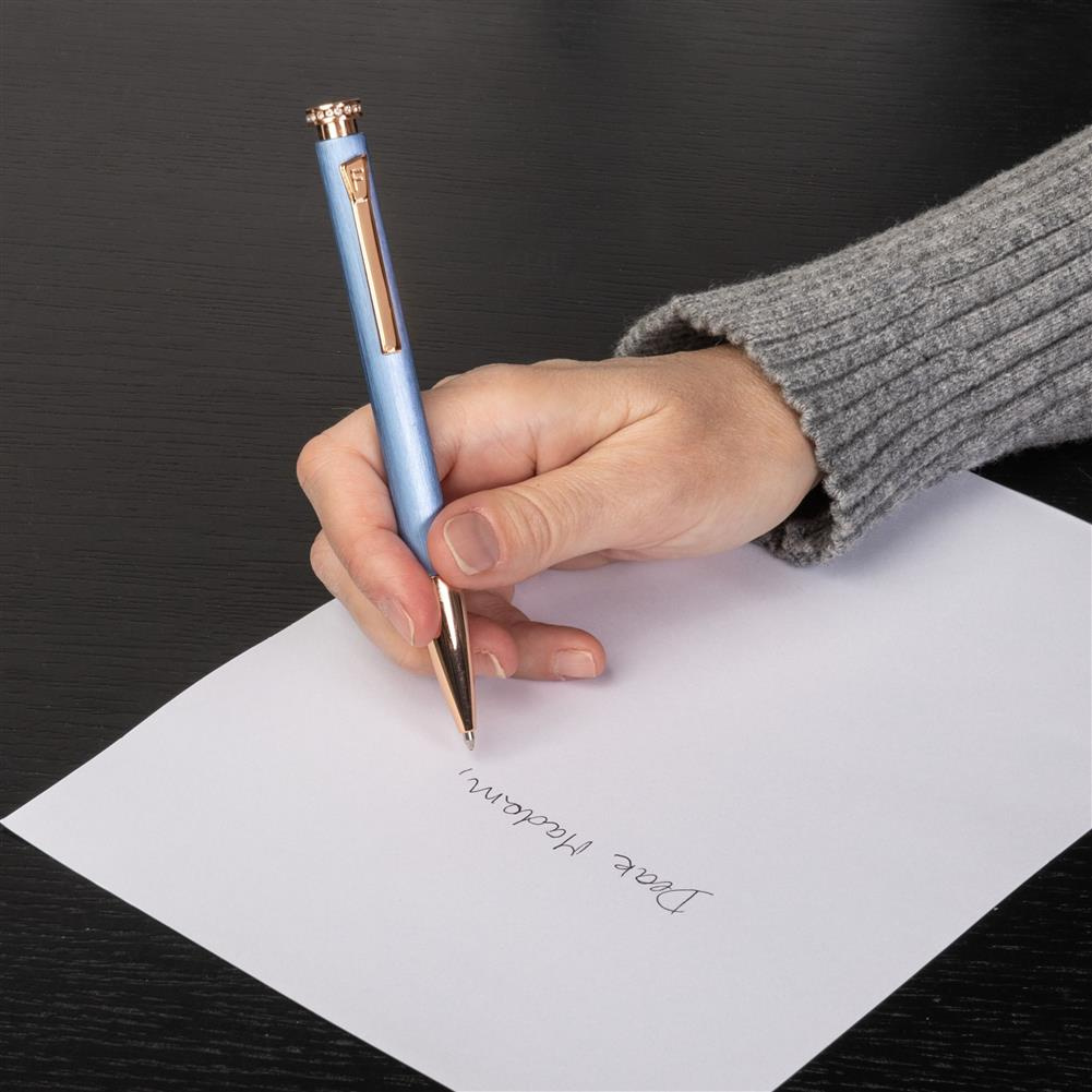 Pióro „Mademoiselle” zostało zaprojektowane z myślą o elegancji i nowoczesnej kobiecości, jednocześnie pozostaje w zgodzie z charakterem marki.
