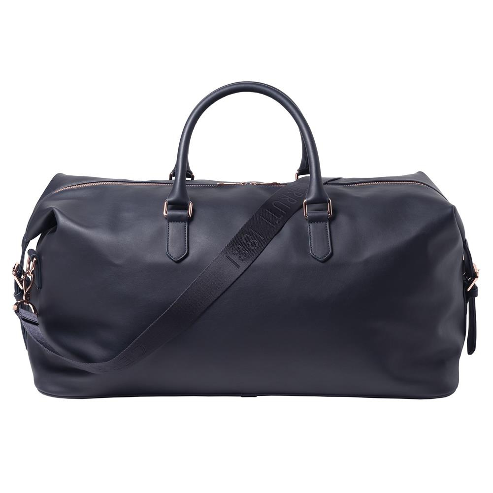 Torba weekendowa `Zoom`, o minimalistycznym wzornictwie i nowoczesnym wyglądzie, wykonana jest z gładkiego i lekkiego granatowego materiału z błyszczącym złoto-różowym wzorem.