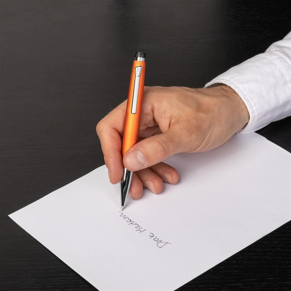 Pióro z delikatnymi, chromowanymi, metalicznymi akcentami łączy w sobie sportowy i luksusowy charakter.