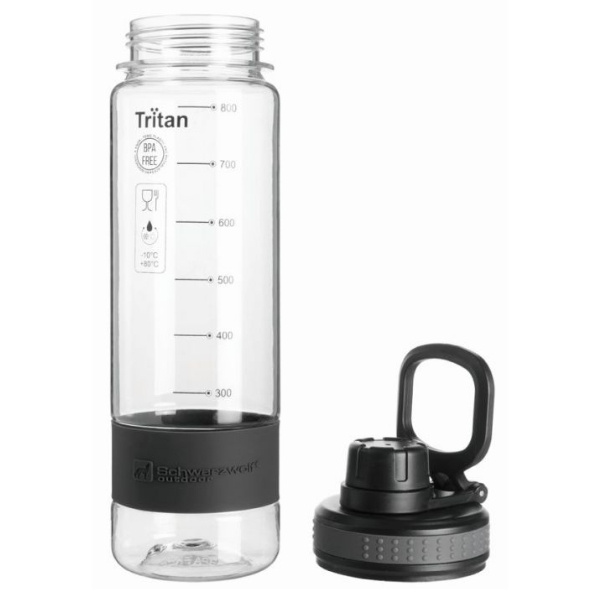 Sportowa butelka Schwarzwolf wykonana z Tritanu o gumowej powierzchni. Nie zawiera BPA.