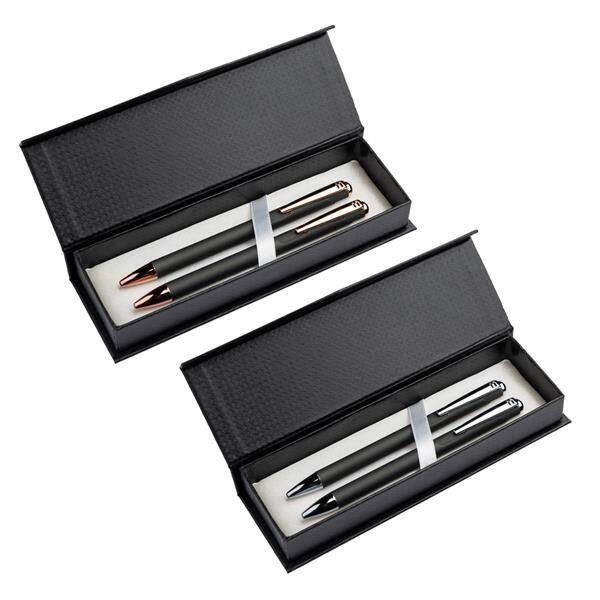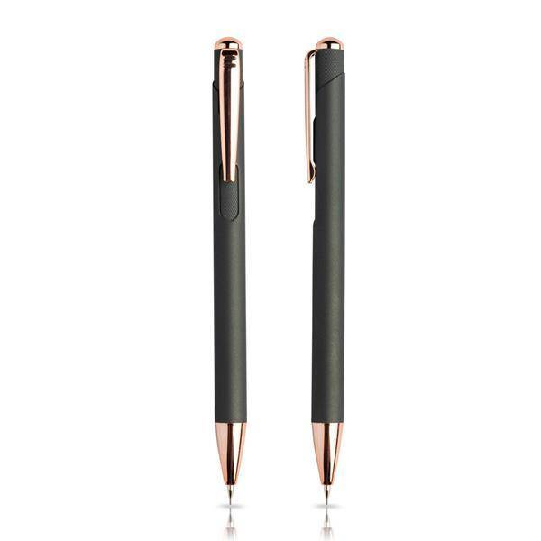 Nowoczesny zestaw piśmienniczy, składający się z długopisu oraz ołówka.