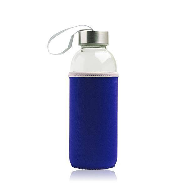 Butelka szklana w neoprenowym etui, z metalową zakrętką, pojemność 460 ml.