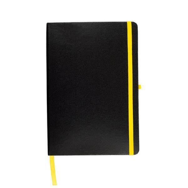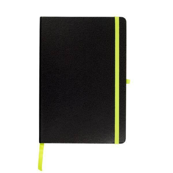 Notes formatu A5, z gumką, zakładką, kieszenią i szlufką na długopis.