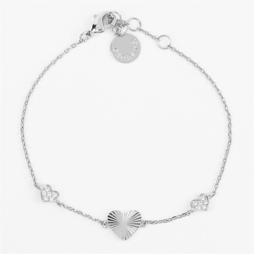 Bransoletka Alix jest delikatna i kobieca, posiada 3 delikatne zawieszki w kształcie serca: środkowa, większa jest delikatnie wygrawerowana, a 2 mniejsze są wysadzane białymi cyrkoniami.