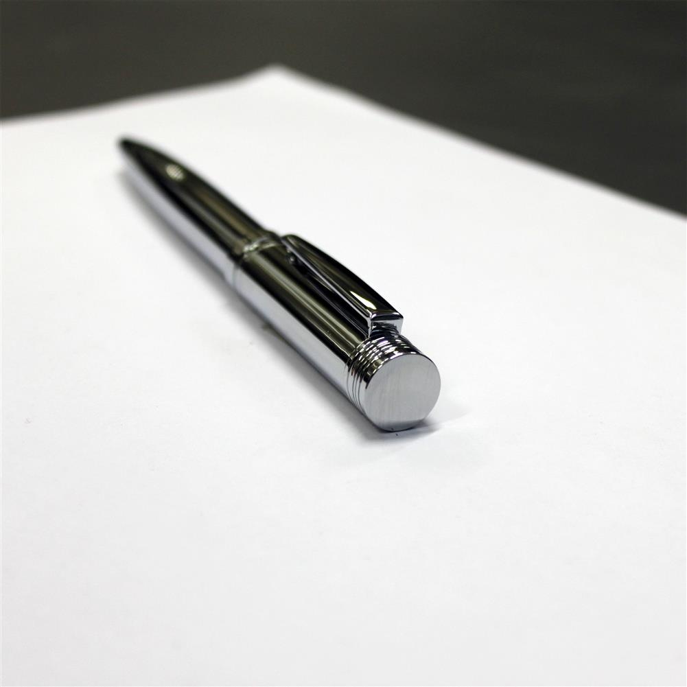 Elegancki długopis wykonany z mosiądzu, piszący na niebiesko.