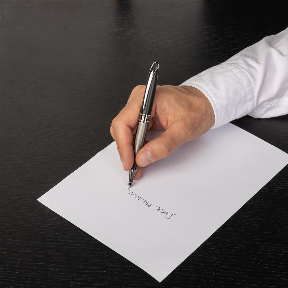 Pióro `Abbey` powstało na bazie jednej z najbardziej kultowych sylwetek linii piśmienniczej Cerruti. Jest teraz na nowo odkryty, łącząc matowe wykończenia z czarnego lakieru z wygrawerowanym diamentowym szlifem dolnej części korpusu, nowoczesny i elegancki.