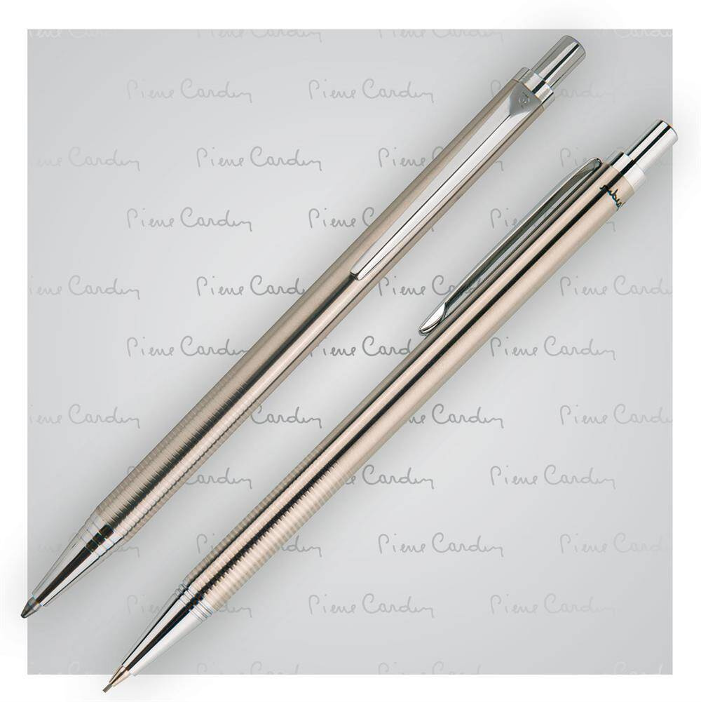 Całość zapakowana w papierowe etui z certyfikatem autentyczności Pierre Cardin.