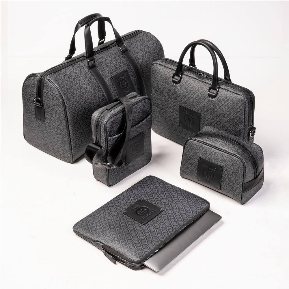 W tym roku Cerruti podąża za trendem monogramów, ale oczywiście w nowoczesnym wydaniu. Rezultat? Odświeżona wersja naszej najlepiej sprzedającej się torby `Hamilton`, z nadrukiem monogramu na całej powierzchni, ozdobiona nowym logo Cerruti. Sekretem zachowania elegancji było utrzymanie tego odważnego elementu w stonowanych odcieniach, mieszając czerń, broń i ciemną szarość, dzięki czemu powstał piękny, elegancko markowy przedmiot, który może pasować do każdego stroju.