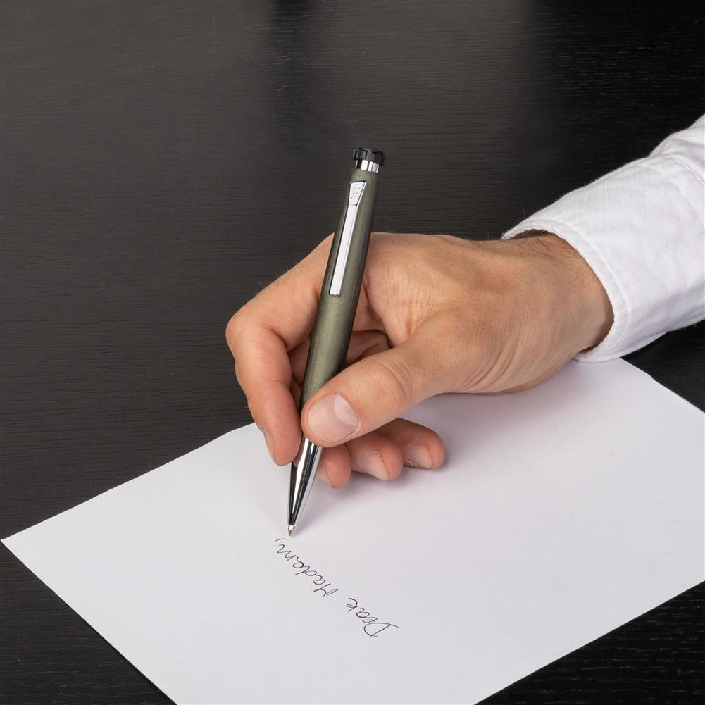 Pióro kulkowe Chronobike w kolorze khaki z delikatnymi, chromowanymi, metalicznymi akcentami łączy w sobie sportowy i luksusowy charakter.