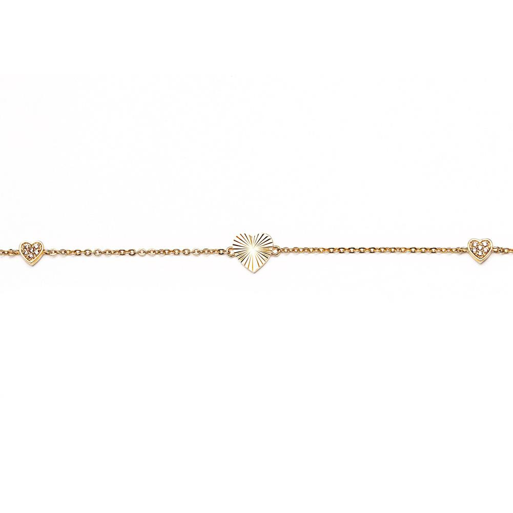 Bransoletka Alix jest delikatna i kobieca, posiada 3 delikatne zawieszki w kształcie serca: środkowa, większa jest delikatnie wygrawerowana, a 2 mniejsze są wysadzane białymi cyrkoniami.