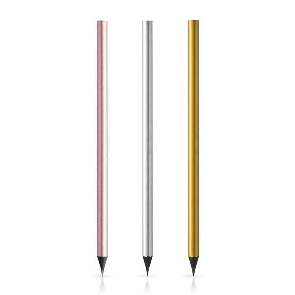 Elegancki czarny ołówek ze srebrną lakierowaną powłoką, zatemperowany.