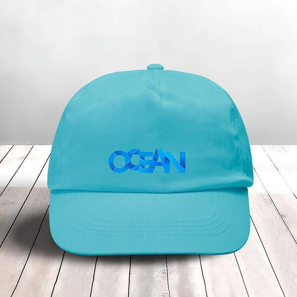 Czapka bejsbolówka z daszkiem z 5 panelami, wykonana z bawełny (20%) i poliestru (80%), z zapięciem na rzep.