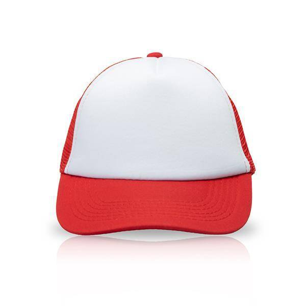 5-panelowa czapka dla dorosłych (obwód głowy: 58 cm), z regulowanym paskiem z dziurkami, wykonana z siateczki i materiału EVA.