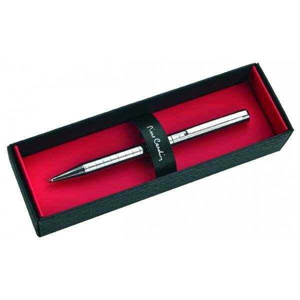 Nowoczesny długopis metalowy z oryginalnym, grawerowanym korpusem i mechanizmem obrotowym. Wyposażony w wysokiej jakości niebieski wkład z końcówką 1 mm. W zestawie z wkładem zapasowym piszącym na czarno. Zapakowany w eleganckie pudełko prezentowe z certyfikatem autentyczności Pierre Cardin.