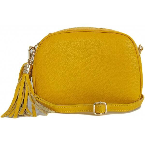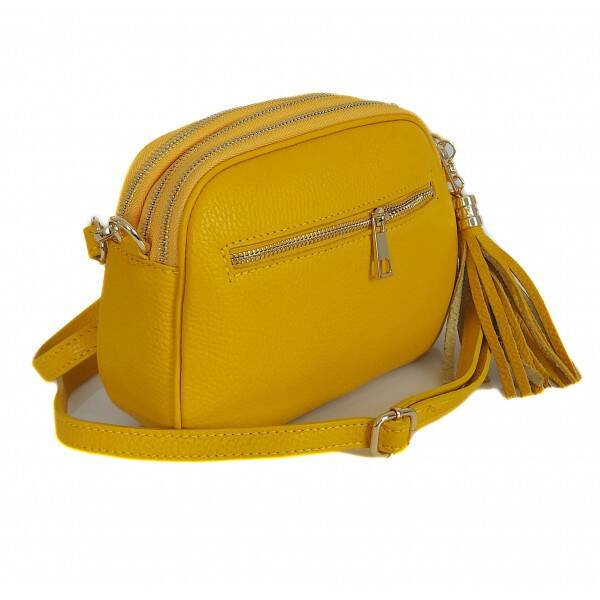 Listonoszka trzy komory frędzelek, złote okucia Vera Pelle Żółta VP3KZGIA