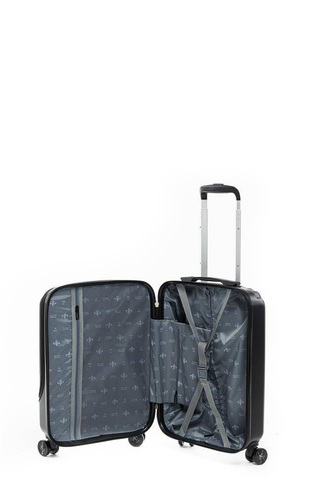 Walizka jest również bardzo praktyczna dzięki przegrodom zamykanym na suwak, co ułatwia organizację i transport Twoich rzeczy. Waży tylko 2,5 kg, co oznacza, że nie będzie dodatkowym obciążeniem podczas Twojej podróży. Teleskopowa rączka na podwójnym stelażu zapewnia wygodę i łatwość manewrowania.