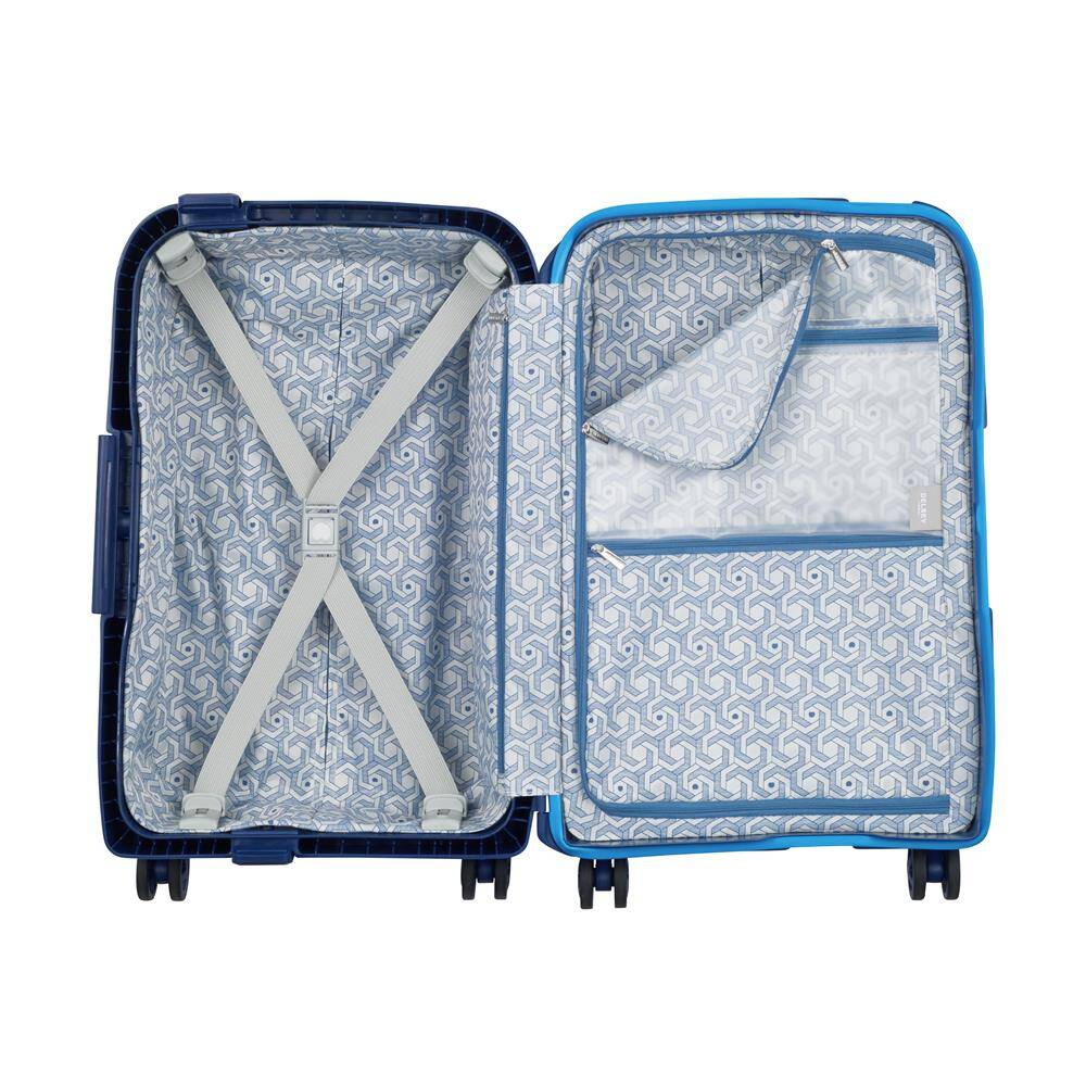 Niebieska walizka kabinowa MONCEY 55 cm, to idealny wybór dla osób poszukujących eleganckiej, pojemnej i funkcjonalnej walizki. Świetnie zaprojektowana walizka z równie przemyślanym wnętrzem, które ma praktyczne przedziały i kieszenie zapewniające komfort pakowania. Całość spina niezawodna ochrona bagażu, jaką daje zamek TSA, dzięki czemu zawartość walizki nie ulegnie uszkodzeniu podczas transportu.