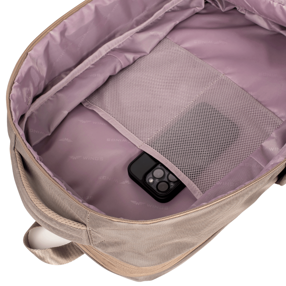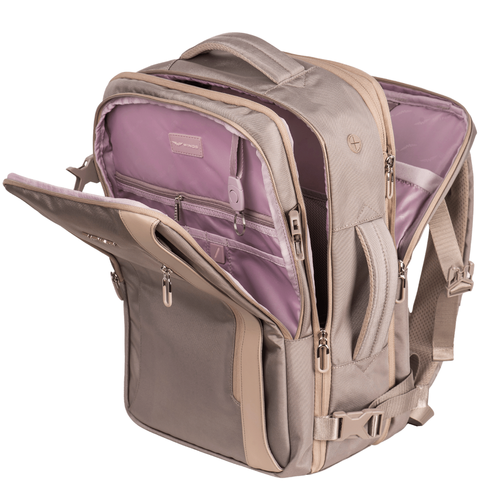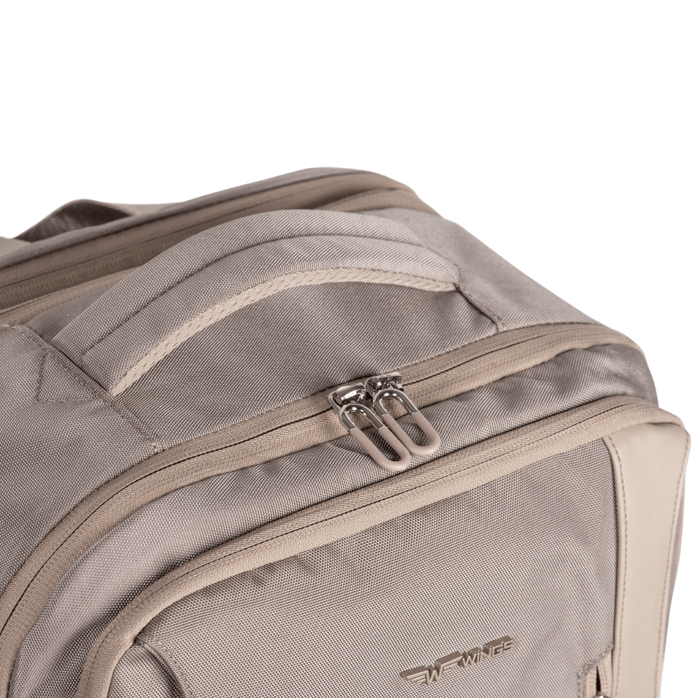 Wings, stylowy plecak Skylark SK001, zaprojektowany dla codziennej wygody, łączy funkcje torby, bagażu podręcznego i plecaka w jednym. Oferuje do 30,5 litra pojemności, dodatkowe poszerzenie, wodoodporną kieszeń na laptopa 15,6" i wiele przegródek, w tym amortyzowaną na elektronikę i specjalną na strój sportowy oraz kosmetyki. Wymiary pasują do darmowego bagażu podręcznego w popularnych liniach lotniczych, jak Ryanair, Wizz Air, LOT i Lufthansa. Wyposażony we wzmocniony uchwyt, tylną taśmę na walizkę, regulowane szelki, hydrofobowy tył dla lepszego odprowadzania wilgoci, oraz zintegrowane wejście USB. Dostępny w trzech kolorach, idealny dla każdego, z możliwością noszenia na plecach, w dłoni lub na walizce, zapewnia maksymalną wygodę dzięki przemyślanej konstrukcji i funkcjonalności.