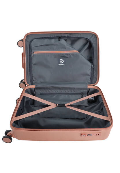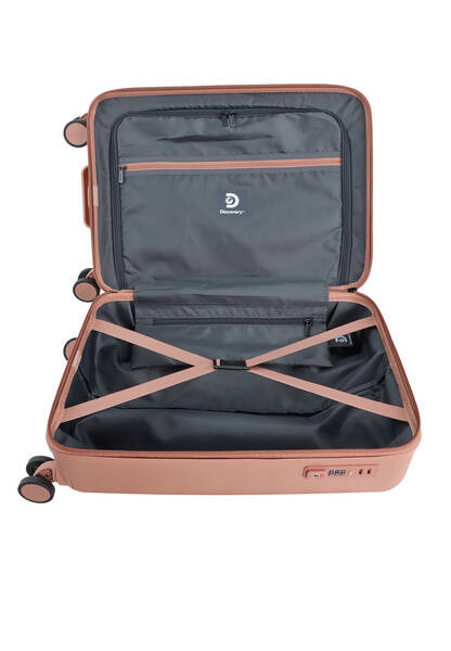Walizka klasy premium z serii FOCUS marki Discovery cechuje się prostym dsignem i bardzo wysoką jakością materiałów z których została wykonana - wytrzymała i odporna na uszkodzenia lekka konstrukcja ABS. Posiada cztery podwójne wysokiej jakości kółka obracane o 360 stopni, stelaż aluminiowy z regulowaną wysokością(z przyciskiem blokującym) oraz płaski zamek szyfrowy TSA dzięki czemu jest świetnym rozwiązaniem dla osób, które dużo czasu spędzają w podróży i cenią sobie wygodę oraz bezpieczeństwo swojego bagażu. Wnętrze walizki posiada pasy zabezpieczające, które zapobiegają przemieszczaniu się zawartości bagażu oraz pełną, zapinaną na suwak komorę wraz z podszewką klasy premium.