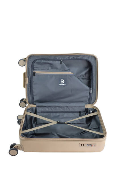 Walizka klasy premium z serii FOCUS marki Discovery cechuje się prostym dsignem i bardzo wysoką jakością materiałów z których została wykonana - wytrzymała i odporna na uszkodzenia lekka konstrukcja ABS. Posiada cztery podwójne wysokiej jakości kółka obracane o 360 stopni, stelaż aluminiowy z regulowaną wysokością(z przyciskiem blokującym) oraz płaski zamek szyfrowy TSA dzięki czemu jest świetnym rozwiązaniem dla osób, które dużo czasu spędzają w podróży i cenią sobie wygodę oraz bezpieczeństwo swojego bagażu. Wnętrze walizki posiada pasy zabezpieczające, które zapobiegają przemieszczaniu się zawartości bagażu oraz pełną, zapinaną na suwak komorę wraz z podszewką klasy premium.